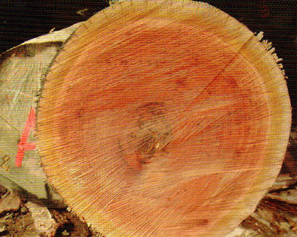 心邊材區(qū)別明品、心材新切面玫瑰紅色,久則我紅褐色。邊材灰黃褐色,寬3~6cm。生長輪不明景。